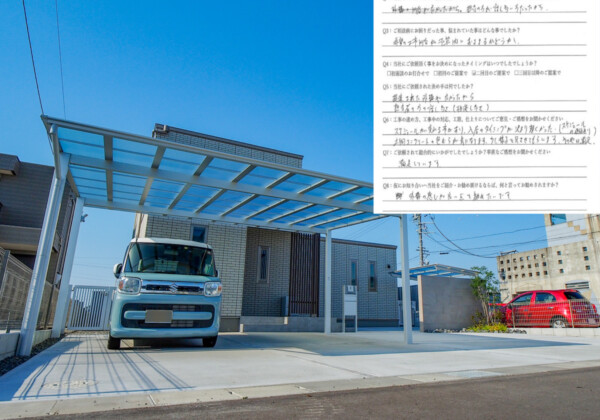 わかりやすく丁寧な対応で満足しています。カーポートを設置したことで今...