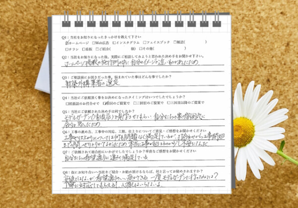 Q1:当社をお知りになったきっかけを教えてください ☑ ホームページ ☑ 看板 Q2:当社をお知りに...
