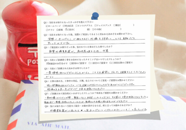 Q1:当社をお知りになったきっかけを教えてください ☑ ホームページ Q2:当社をお知りになった後、実際にご相談し...