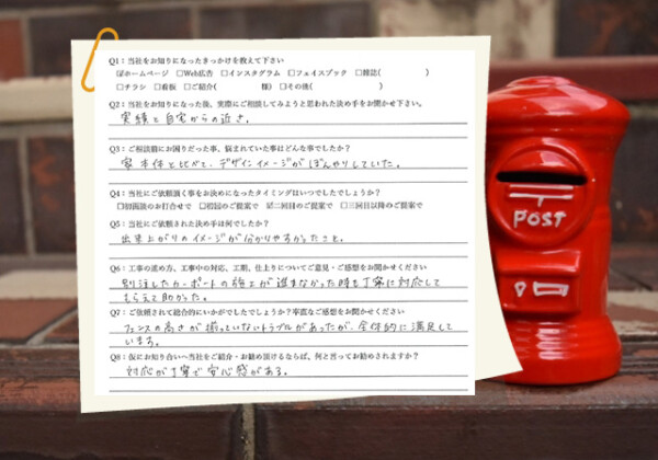 Q1:当社をお知りになったきっかけを教えてください ☑ 看板  ☑ その他(家の近く) Q2:当社を...