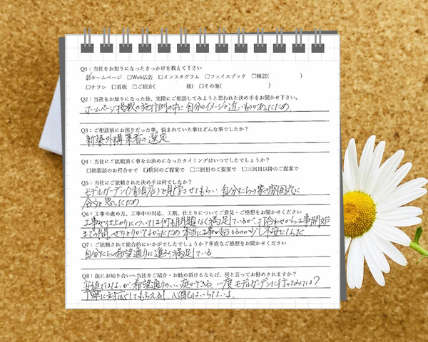 Q1:当社をお知りになったきっかけを教えてください ☑ ホームページ Q2:当社をお知りになった後、実際にご相談し...