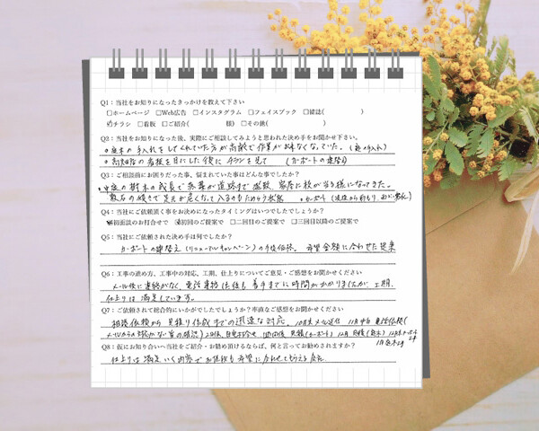Q1:当社をお知りになったきっかけを教えてください ☑ ホームページ ☑ 看板 Q2:当社をお知りに...