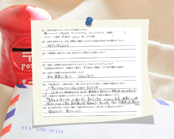 Q1:当社をお知りになったきっかけを教えてください ☑ その他( 娘宅の工事を見て ) Q2:当社をお知りになった...