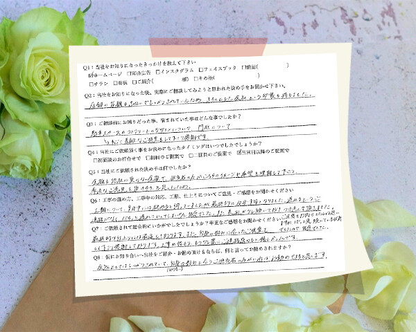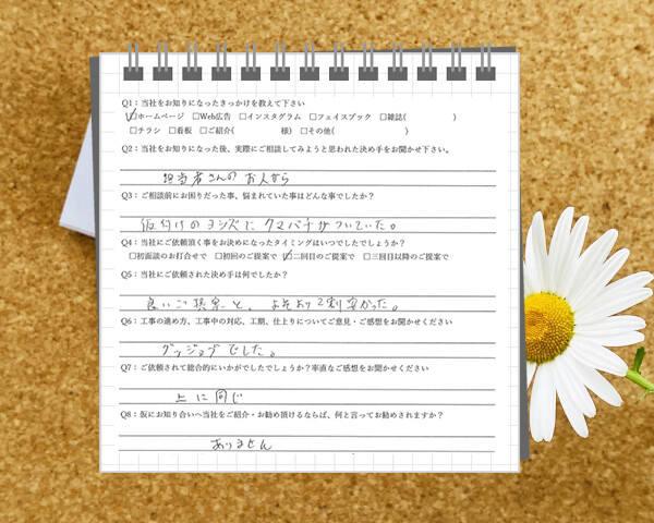 Q1:当社をお知りになったきっかけを教えてください ☑ ホームページ Q2:当社をお知りになった後、実際にご相談し...