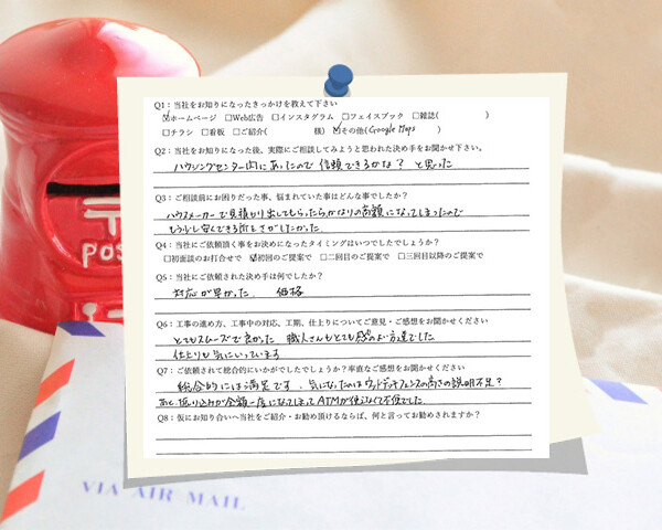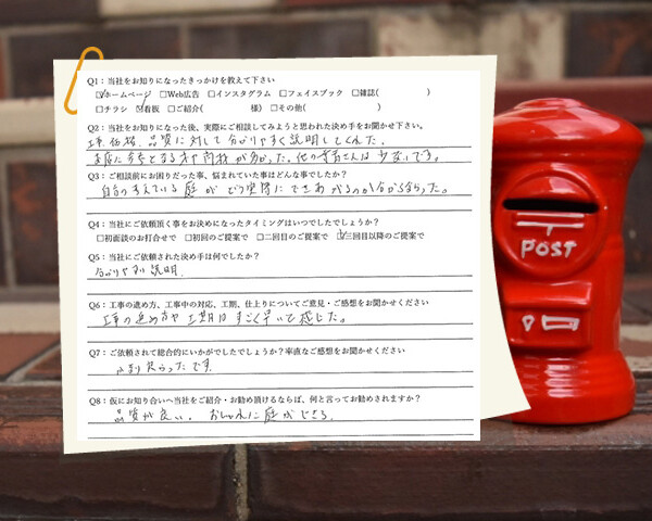 Q1:当社をお知りになったきっかけを教えてください ☑ その他(近所にあったため) Q2:当社をお知りになった後、...